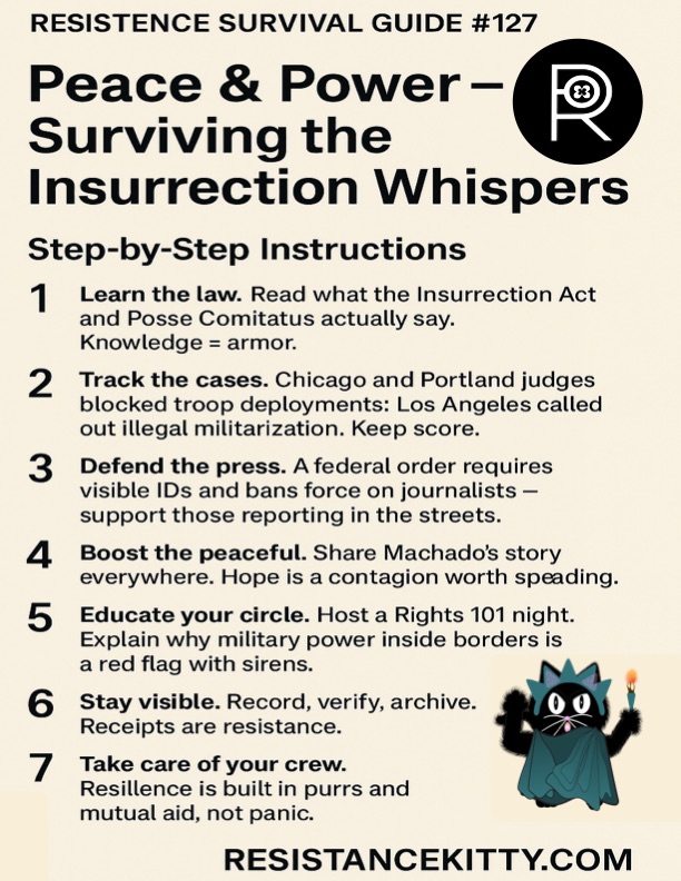- Learn the law. Read what the Insurrection Act and Posse Comitatus actually say. Knowledge = armor.